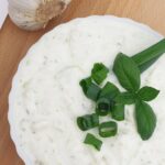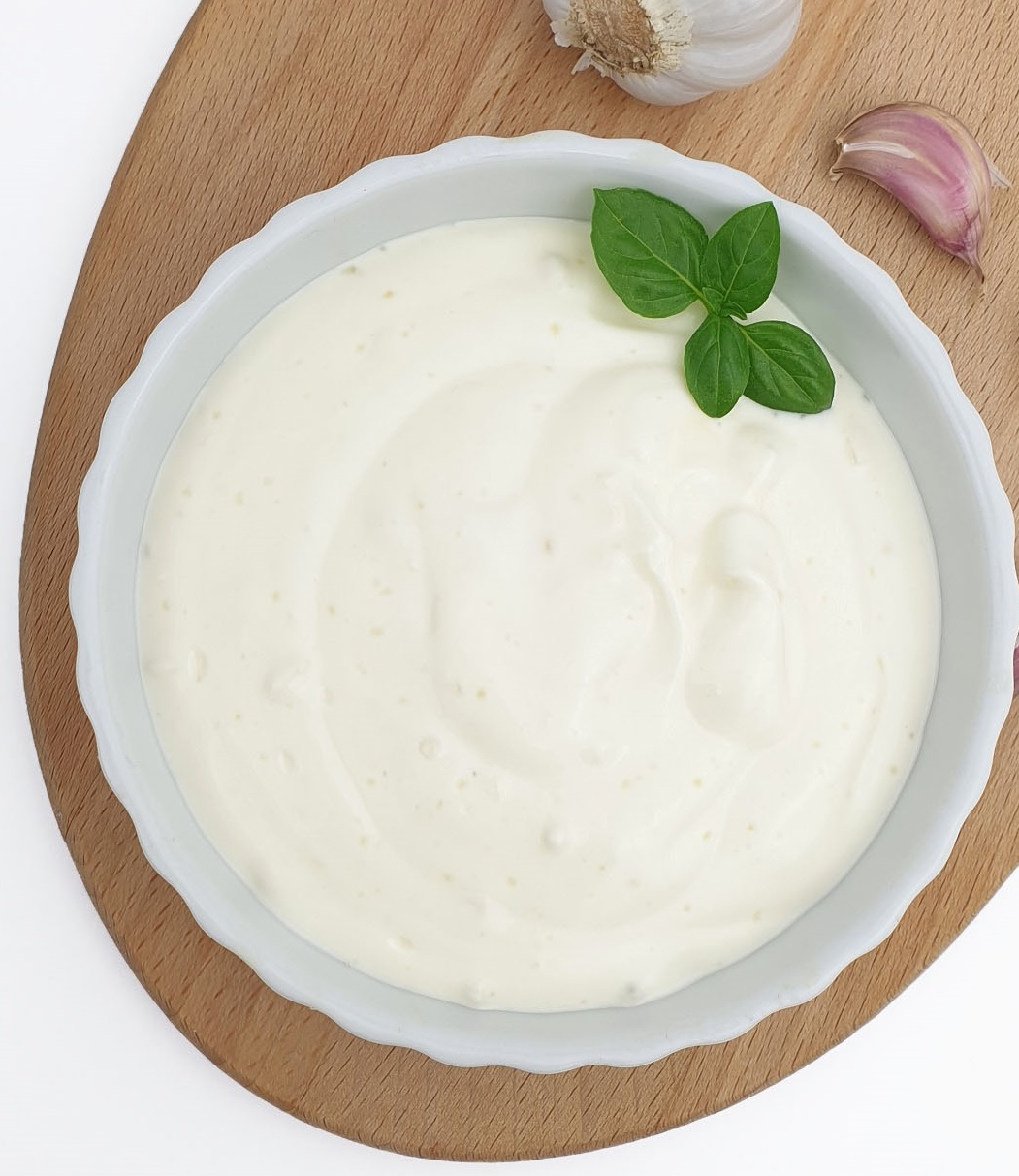 Sos czosnkowy na bazie jogurtu skyr, to świetna alternatywa na mniej kaloryczny sos.