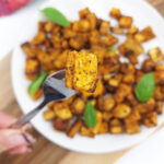- Piec w piekarniku rozgrzanym do 180 stopni, przez ok. 25 min (kontroluj czas pieczenia, batat jest gotowy, kiedy stanie się miękki i się zarumieni).