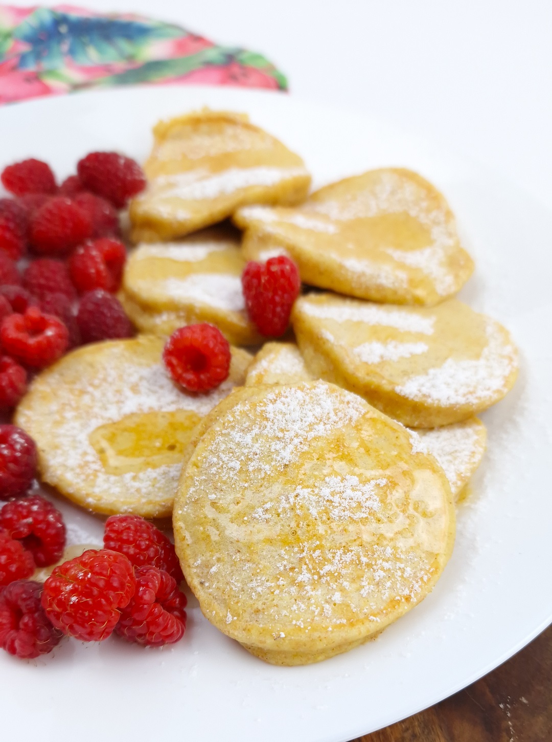 - Podawać oprószone pudrem z erytrytolu, oblane dodatkowo syropem klonowym i malinami.