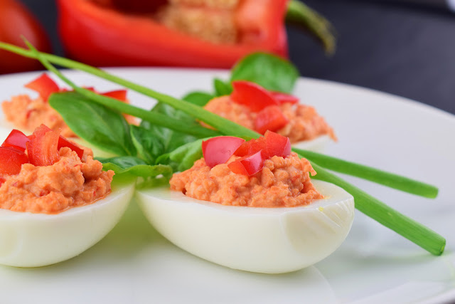 - Wszystko razem zapiec w piekarniku rozgrzabymdo 180 stopni (termoobieg) przez ok. 10-15 minut (jajka są gotowe, kiedy białko będzie lekko rumiane).