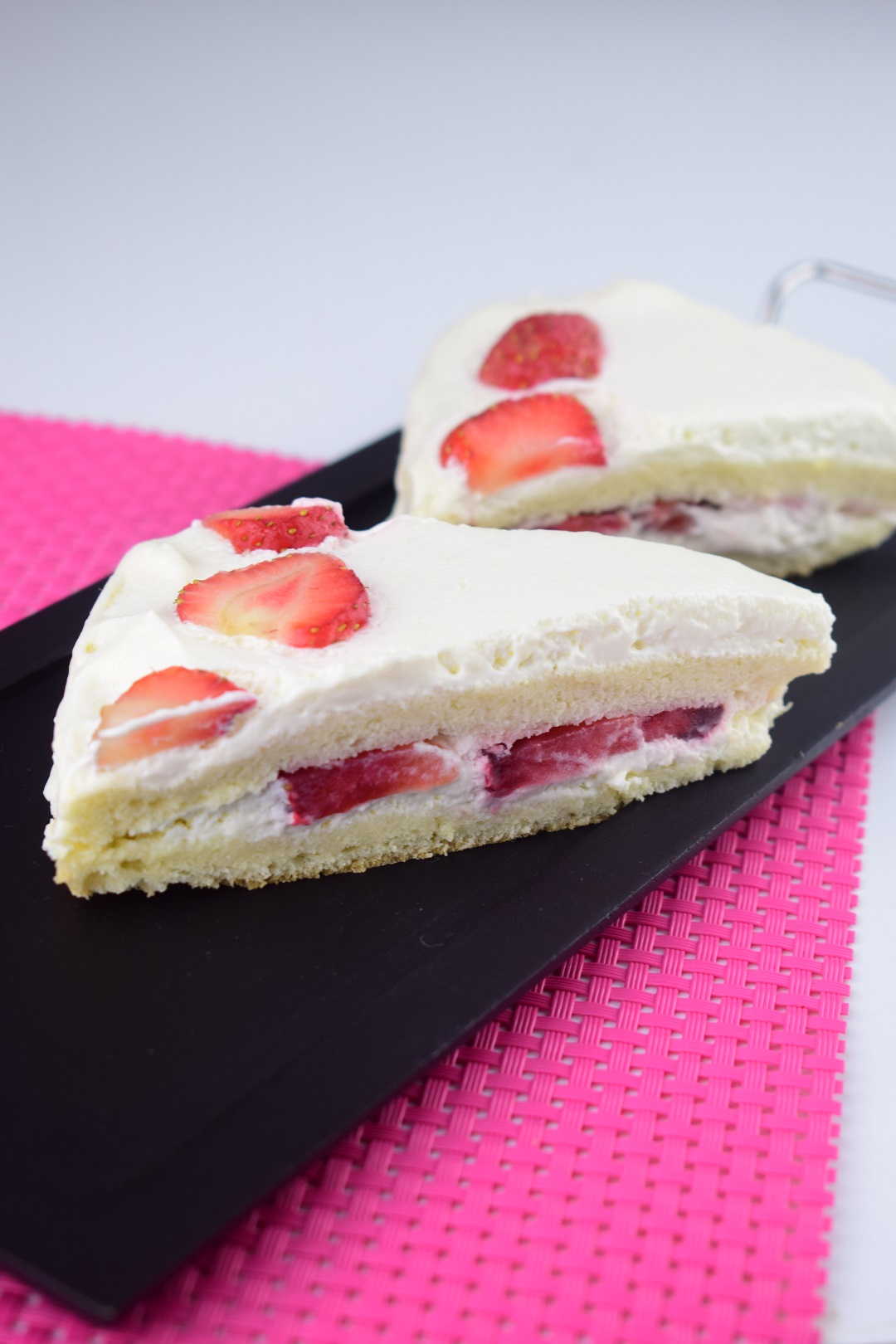 Żelatynę rozpuścić i wystudzić – dodać do jogurtu i dokładnie wymieszać. Pozostawić na około 10 minut, aby masa lekko stężała i przełożyć biszkopt.