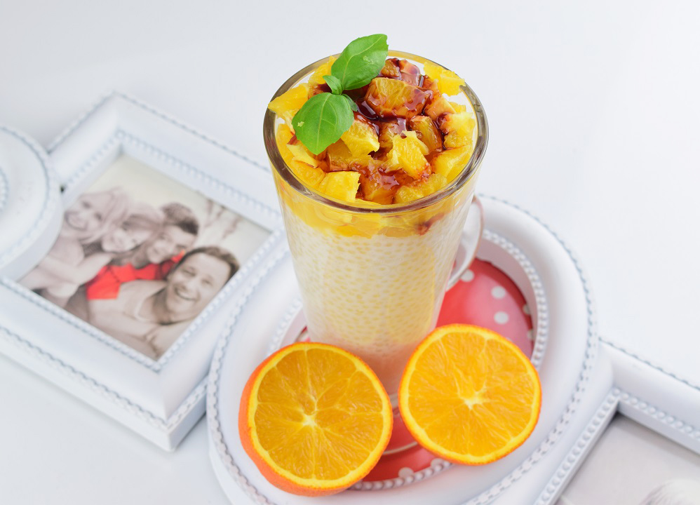 Dodać ulubione owoce. U mnie jagody i pomarańcze.