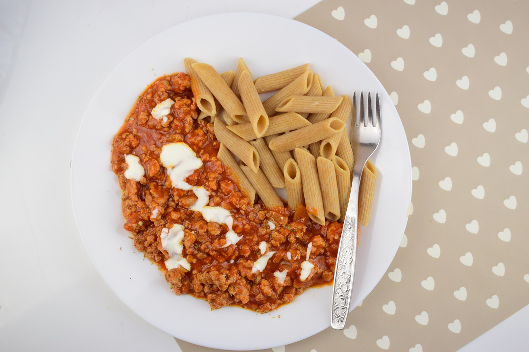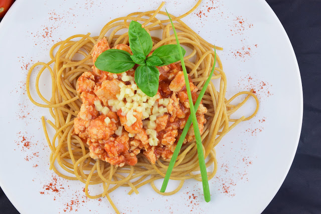 Mocno pomidorowe Domowe spaghetti z razowym makaronem 🙂 Moje ulubione danie obiadowe, a do tego bardzo szybkie w przygotowaniu 🙂