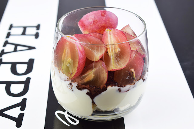Wszystko razem wymieszać, posypać kakao w proszku, a na górę ułożyć ulubione owoce.