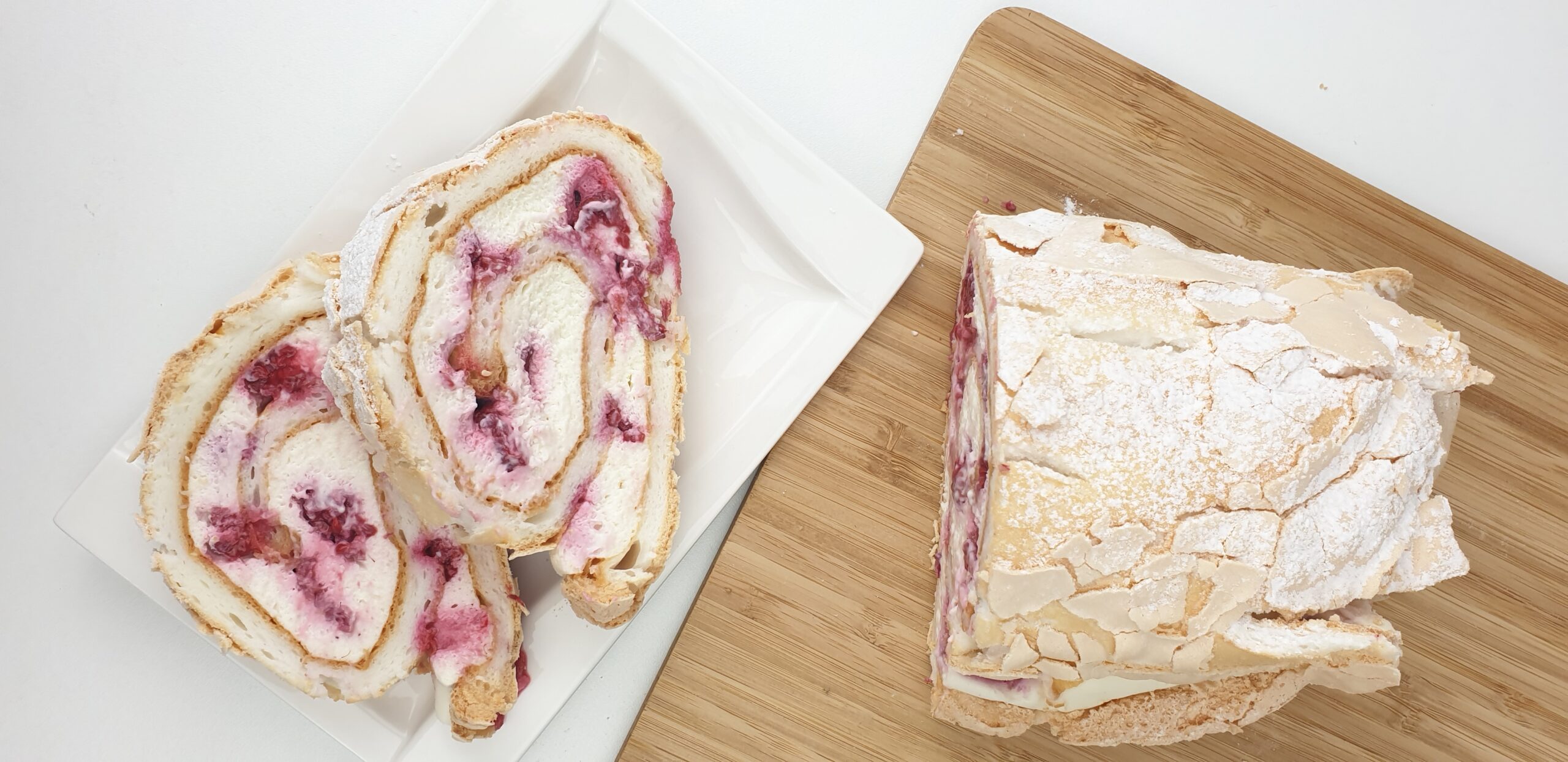 Rolada bezowa – nie jednej osobie jest pewnie dobrze znana, ja natomiast robiłam ją pierwszy raz. Uwielbiam tego typu ciasta, gdzie beza jest delikatna i ma chrupiącą skórkę.Jest to dobry i szybki pomysł na wykorzystanie białek. W przeciwieństwie do zwykłych bez, które należy długo suszyć w piekarniku, taką bezę piecze się zaledwie 30 minut.