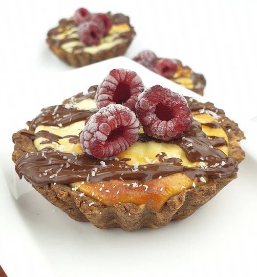 Wszystkie składniki zagnieść na jednolite ciasto i schować do lodówki na 15min.Następnie wykleić ciastem foremki na babeczki, wstawić do rozgrzanego piekarnika i piec w 180 stopniach przez 7 min.